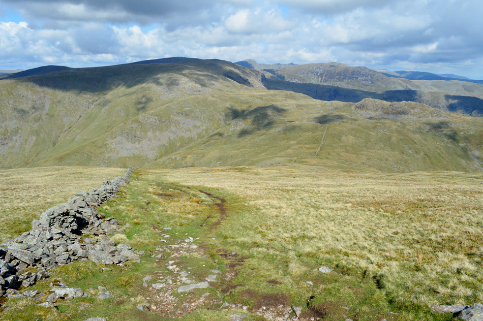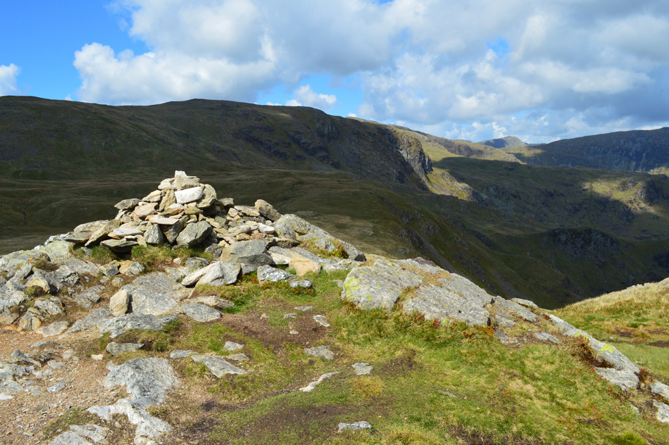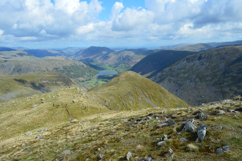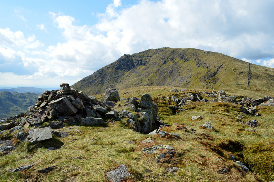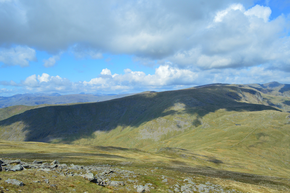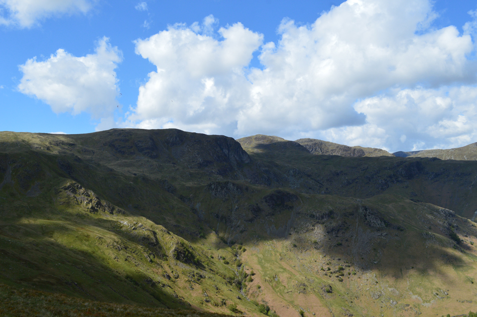 I feared leg burn after spending five of the last seven days on the hill but my legs reacted well as did the lungs. With the shoulder reached layers were re-added due to the cool summit winds whose temperatures either plummeted or rose depending if the sun was hidden, or free from cloud. Next we ascend steadily towards Red Screes via Smallthwaite Band and reached the summit under clear, but chilly skies. After a walk around Red Screes Tarn we descended passing the top of Scandale Pass then made the short ascent onto Little Hart Crag where we broke for lunch.