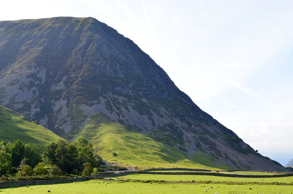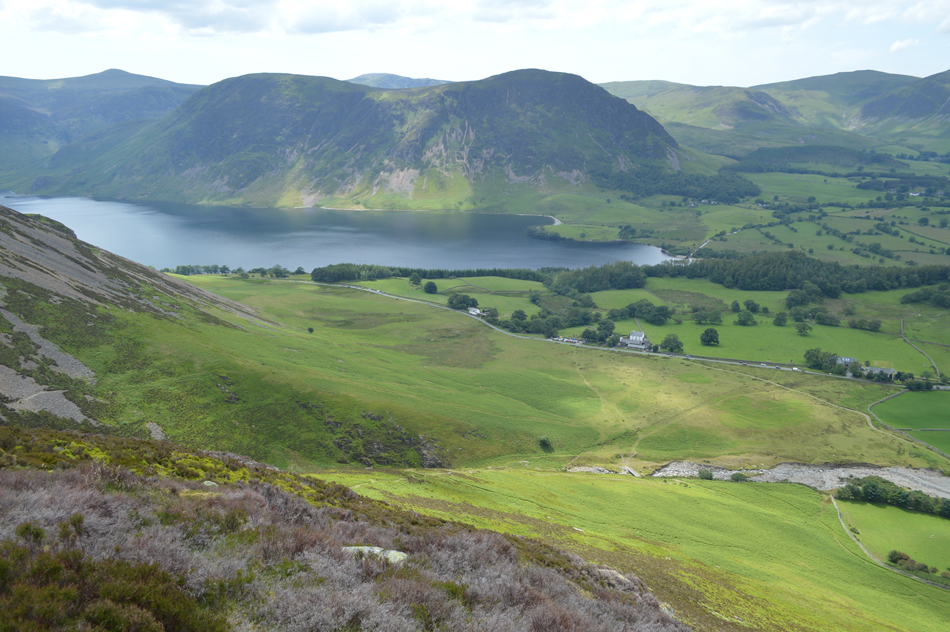 Mellbreak and Crummock Water seen beyond Lanthwaite Green. |