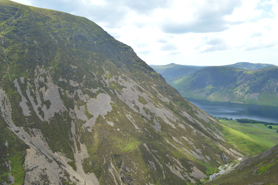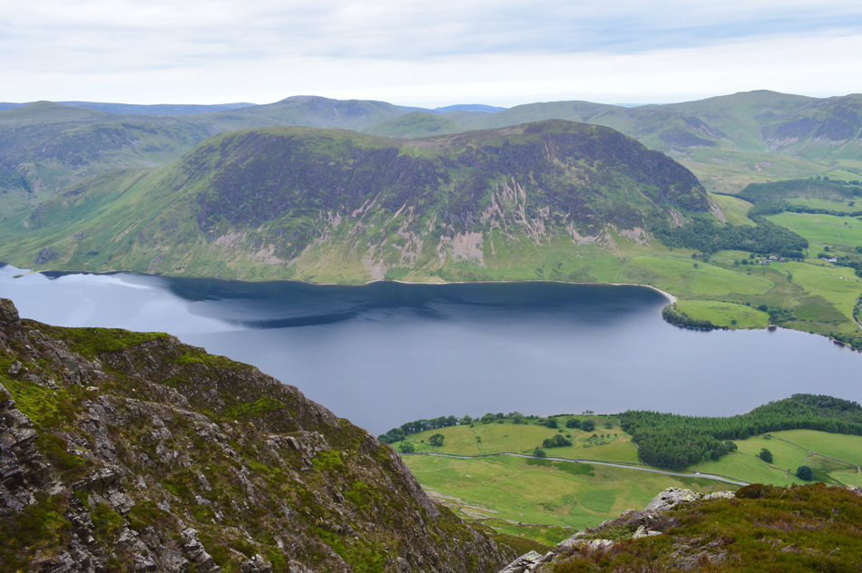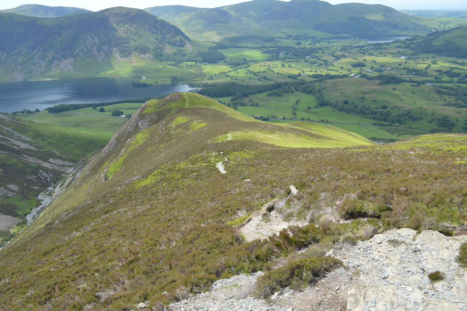 Looking down on Mellbreak and Crummock Water from the rocky arete. |