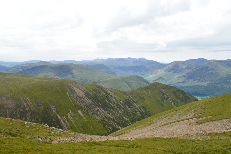 Whin Benn, Whiteside, Gasgale Crags and Hopegill Head from the head of the Grass Rake. |