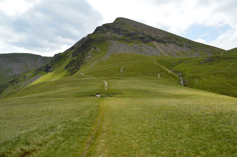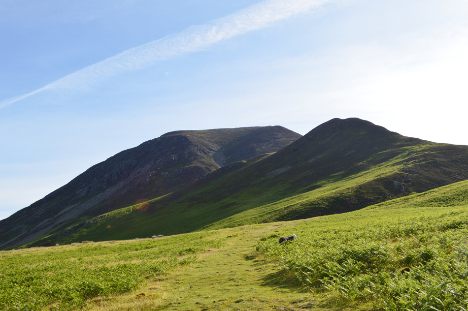 Grisedale Pike and Hobcarton Crag seen over the head of the Hobcarton valley. |