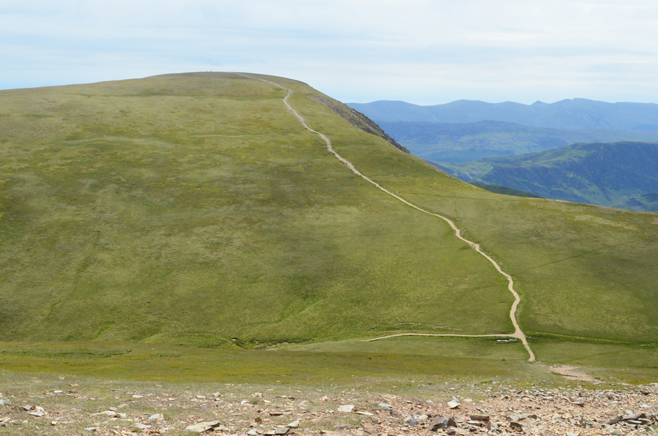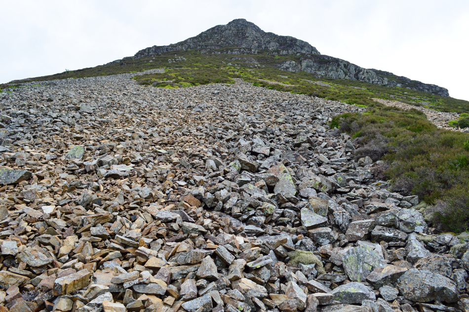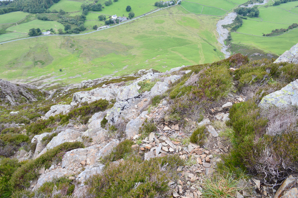 We reached the crossroads in the path and turned right then followed the steep grass bank to the base of the scree, the grass bank gave us the first taster of how steep this ascent is going to be. |