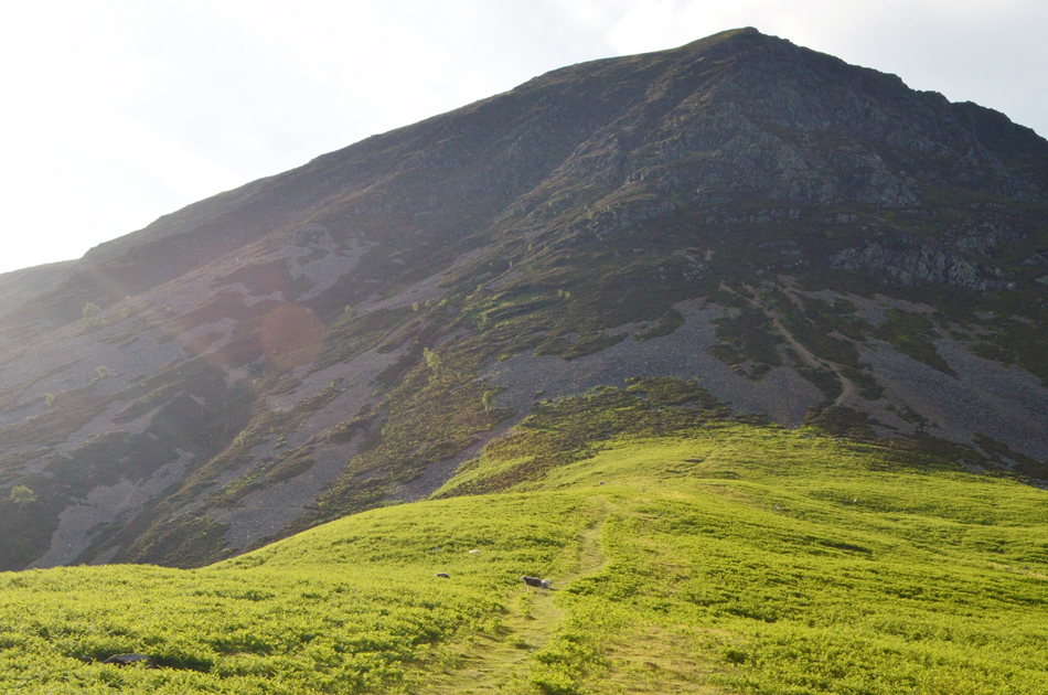 With plenty of time to spare I stopped the car at Brackenthwaite not only to take this photo but to let the enormity of Grasmoor's north west ridge sink in. We've already done our research on the route yet aside the steep grass approach followed by the equally steep scree section it's almost impossible to spot the route onwards.