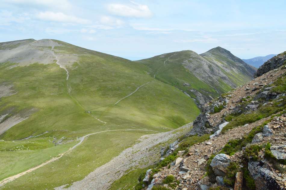 From the zizags I took this photo over Coledale Hause looking towards Sand Hill, Hopegill Head, Hobcarton Crag and Grisedale Pike. |