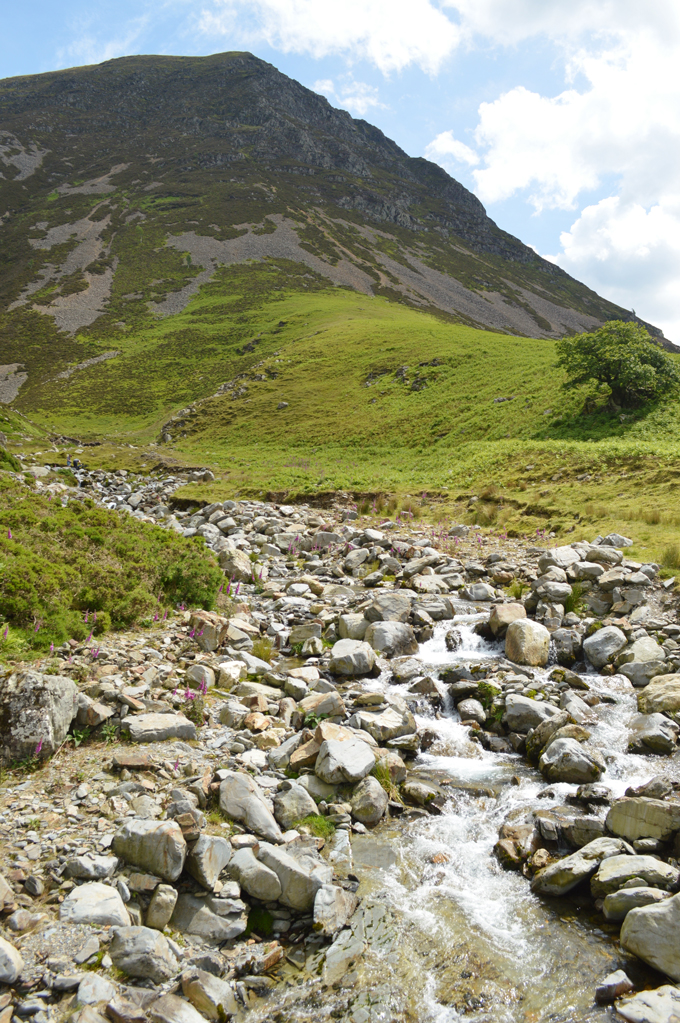 Grasmoor North West Ridge taken as we cross the footbridge over Liza Beck. |