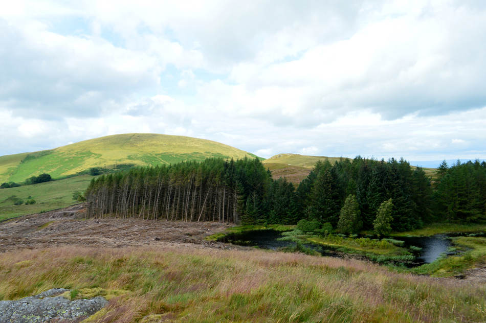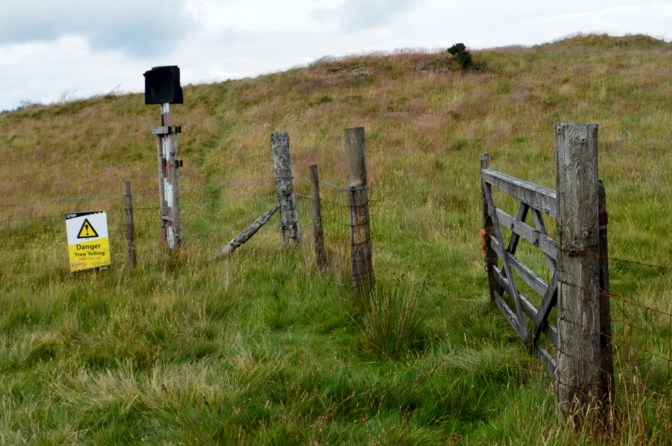 I left Great Meldrum and instead of heading left towards the fence line I head right and pass through this gate. It's been a few years since I was last here and since then the woodland has been partially felled leaving the place looking unrecognisable and not to mention a bit of an eyesore. |