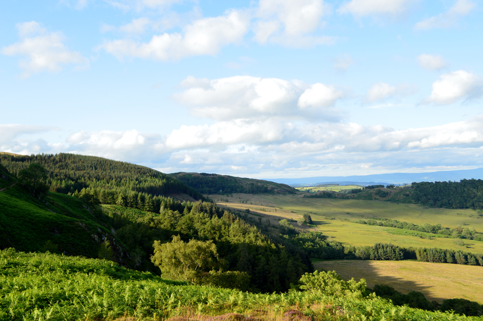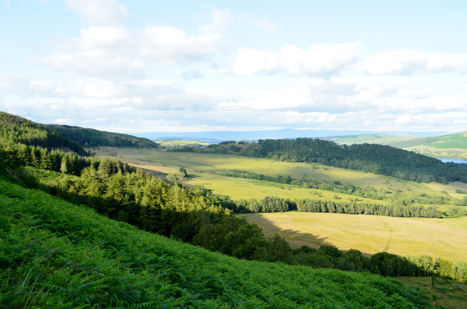 More tree felling was taking place on the lower ground below Swinburn's Park which didn't really affect my views as I followed the path through the steep sided woodland flanking Little Meldrum and Great Meldrum directly above. In the thick of the woodland the path is slippy underfoot with pine needles covering the entirety of the woodland floor yet soon the brightness of the afternoon breaks through as I continue towards the remains of the Old Shooting Lodge. |