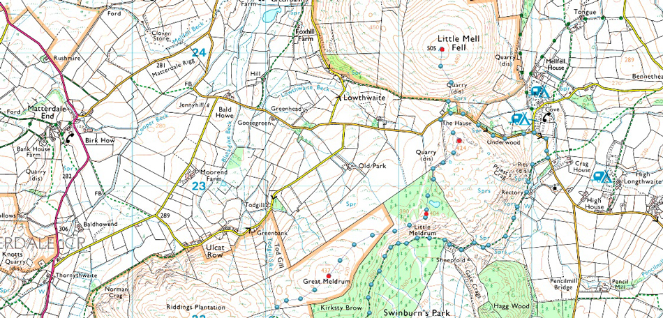 6, Green Hill (Gowbarrow Park) - Gowbarrow Fell - Great Meldrum - Little Meldrum - Watermillock Fell - Little Mell Fell |