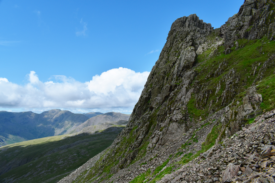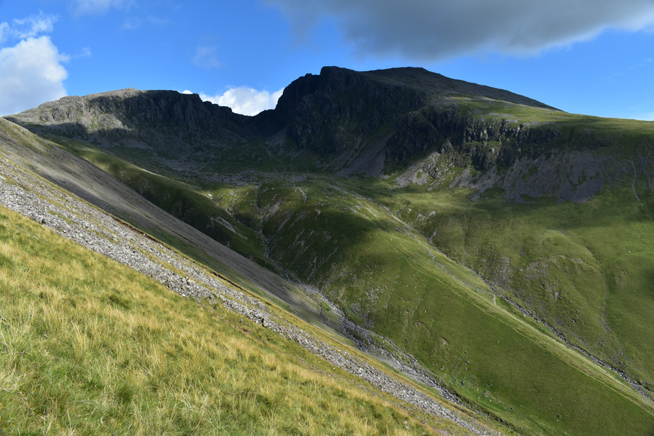 I'm yet to ascend Great Gable via Great Hell Gate seen to the right of The Napes, Great, and Little Hell Gate, seen to the left can be accessed via the South Traverse seen horizontally below Great Napes, it appears unnavigable but there is a path accessed from both Gavel Neese and Sty Head, although it isn't for the faint hearted. I'm hoping by the end of Summer I'll have ascended by Great Gable by Great Hell Gate, that's if it ever stops raining that is. |
