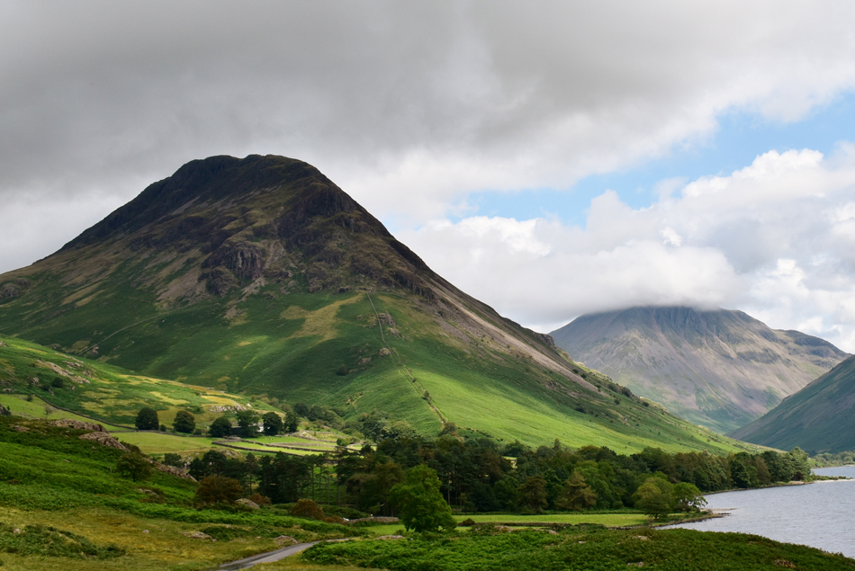 It wasn't my intention to stop at Wast Water on my way to Wasdale Head but I couldn't resist this view of Yewbarrow, Great Gable and Lingmell. It's been a cloudy morning for the highest peaks which was set to lift around early afternoon which is anytime now. |