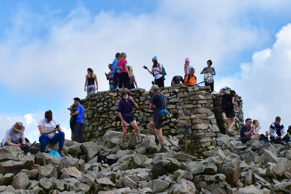 I tried not to let the incident bother me and ruin the rest of my walk but it just niggled there in the pit of my stomach. I keep positive and put the incident behind me and continued my ascent crossing the boulder-some summit shoulder and arrived at the trig point which I tap with the tip of my walking pole. The summit is busy with people and chatter and while I have the views I descend slightly in the direction of Broad Crag Col. |