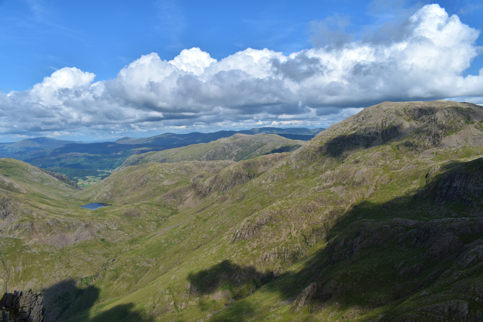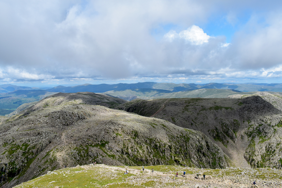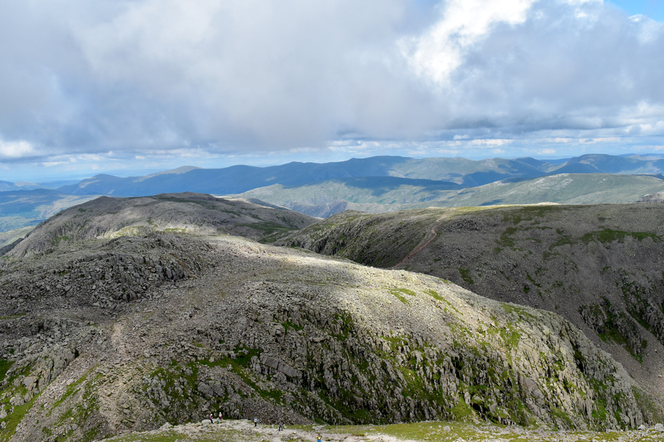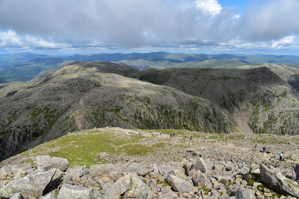 Great End, Seathwaite Fell and Glaramara from Lingmell summit. |