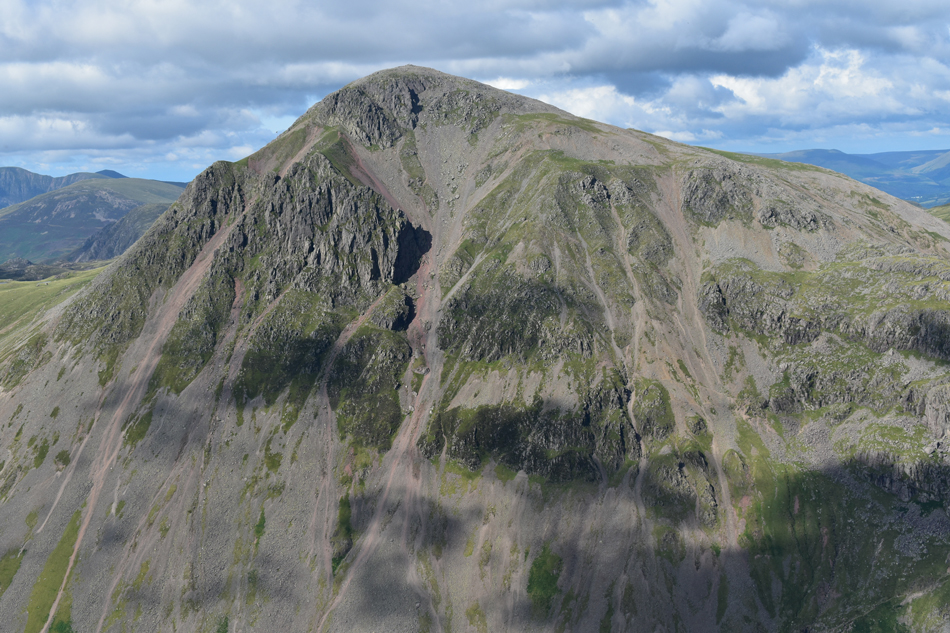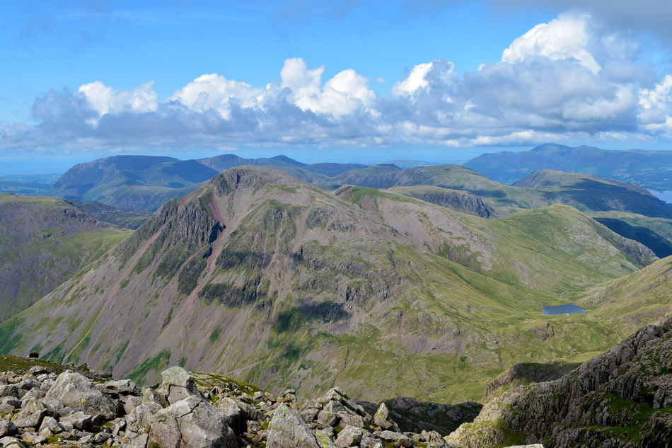 The view over Gavel Neese (Great Gable) towards Kirk Fell, Pillar and Scoat Fell. |