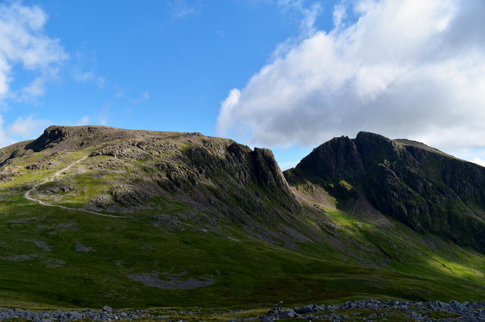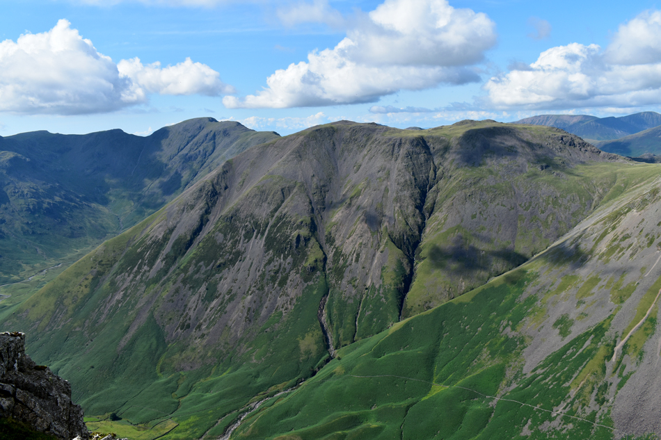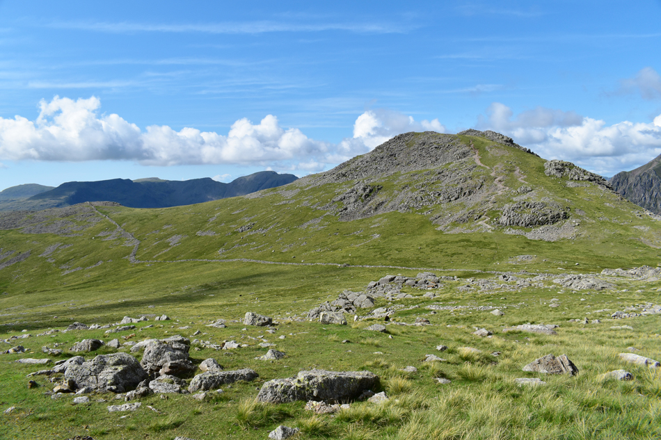 Lingmell, Great Gable and Mosedale seen over Lingmell Col. |
