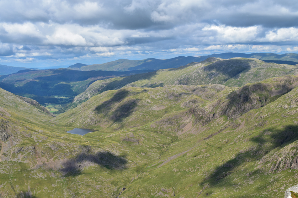 With Sty Head and Styhead Tarn below with the faint outline of The Corridor Route seen over on the right. |