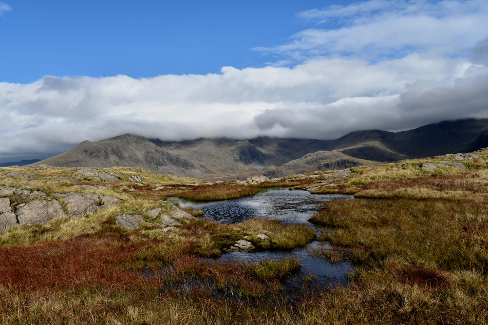 I really do love this time of year on the Lakeland fells as the wild grasses turn a rich brown when set against the little pools and stoney outcrops. |