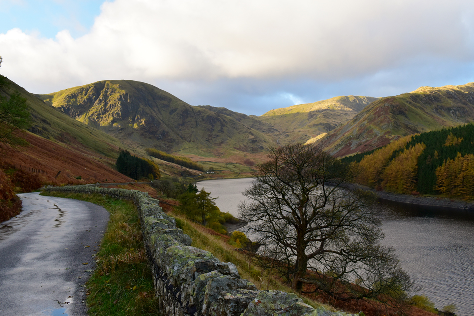 It had been a real sporadic drive north encountering heavy rain and sunshine which was still reflecting above the Far Eastern fells by the time I arrived along the shores of Haweswater. it's views like this which remind me why I love this time of year so much. |