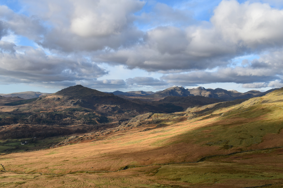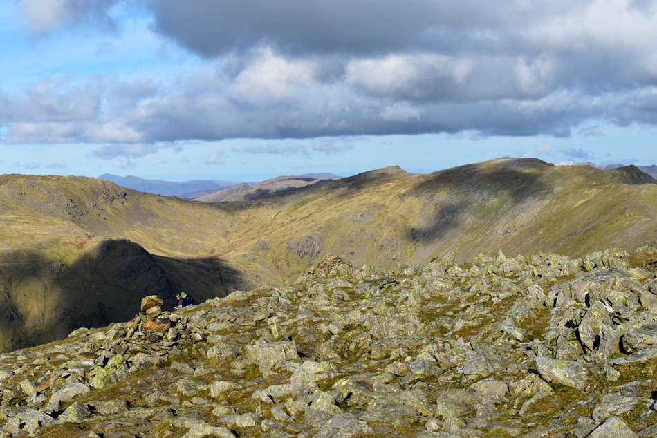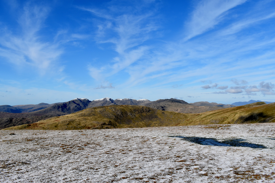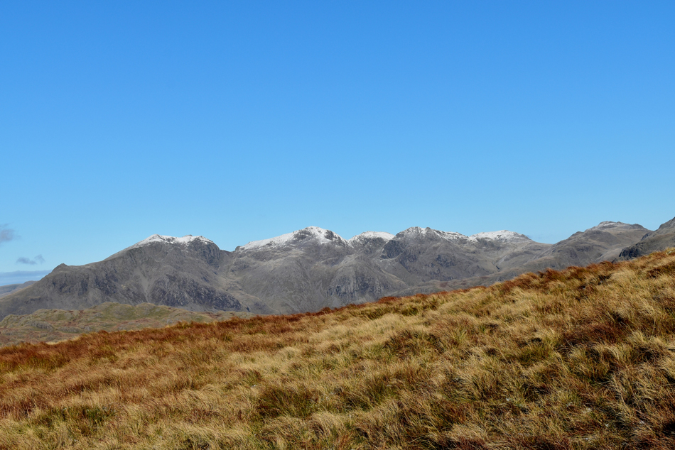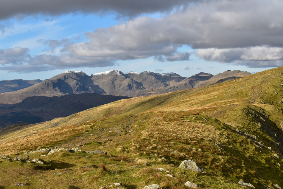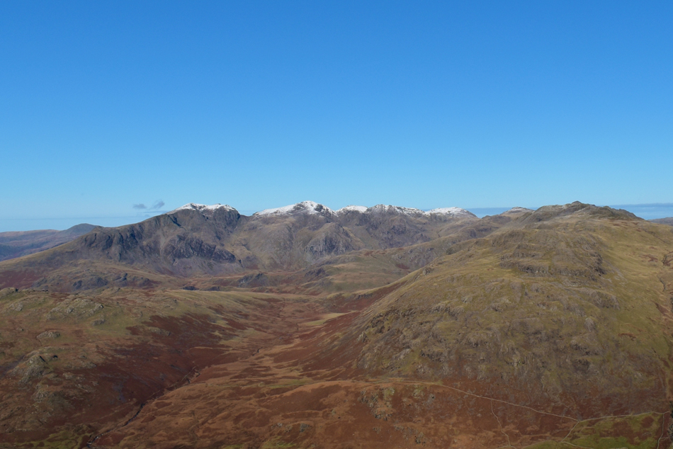 Views over Little Stand towards the Scafells, Crinkle Crags and Bow Fell. |