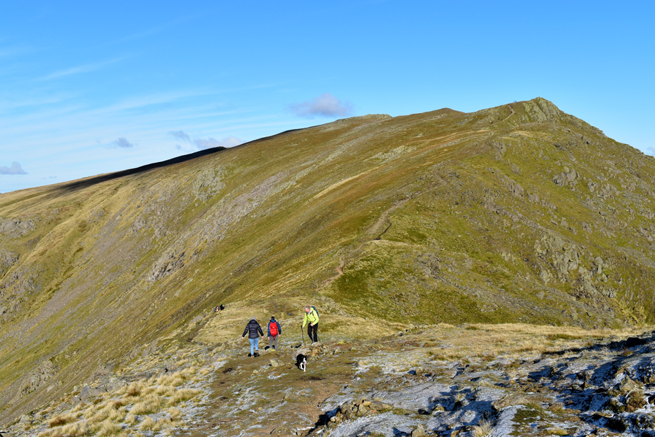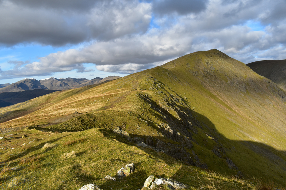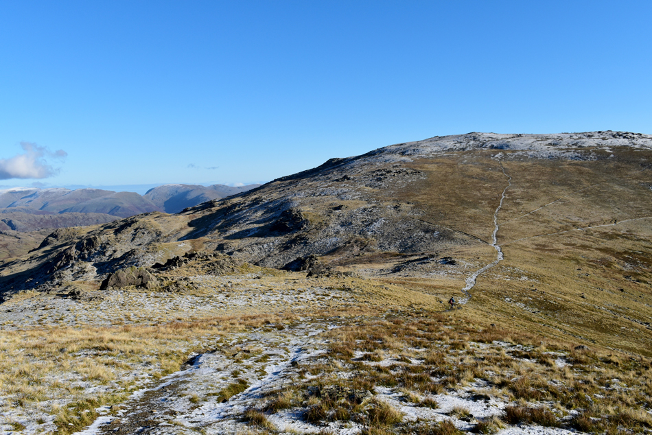 Looking back over Fairfield (col) towards Grey Friar. |