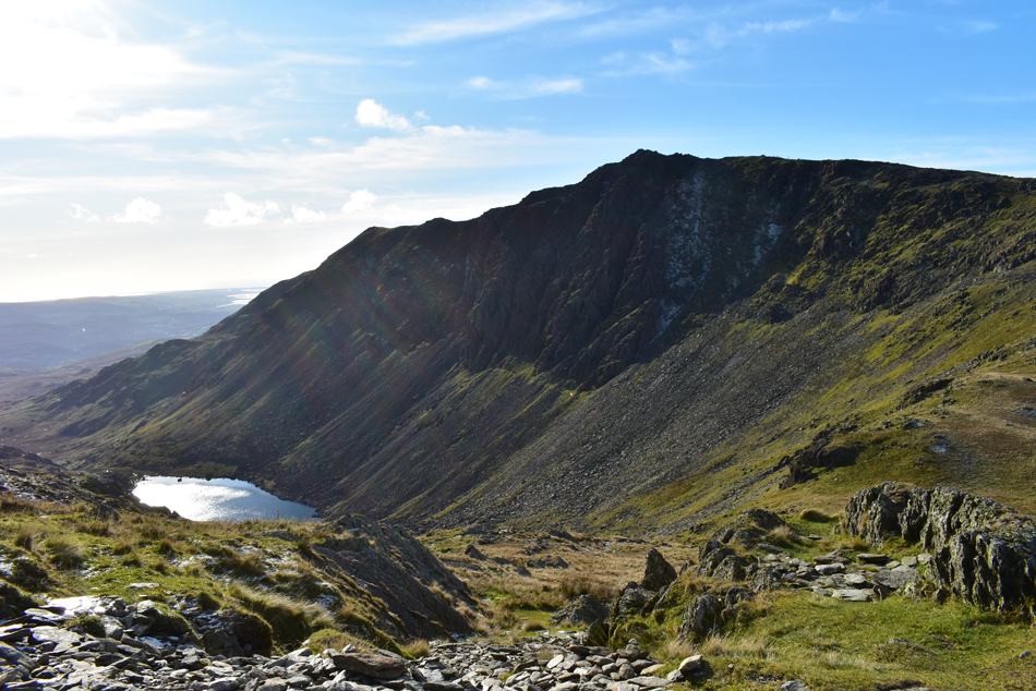 Grey Friar, Swirl Band and Levers Hawse from Seathwaite Tarn (reservoir) |