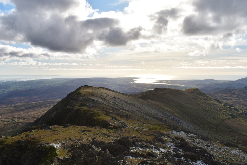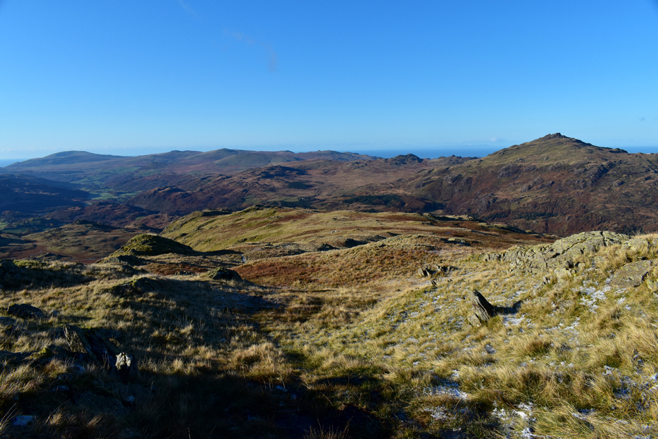 As we start our ascent on Brim Fell with views of Dow Crag and a distant Black Combe. |