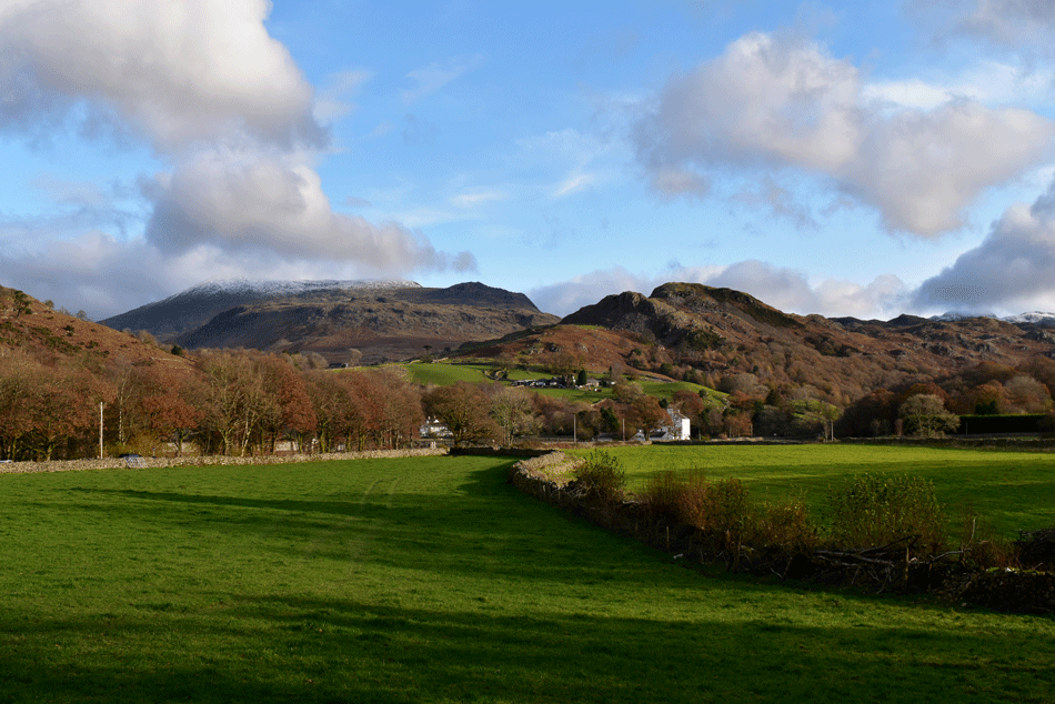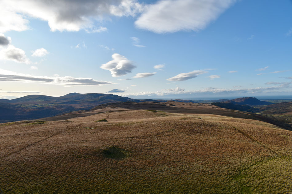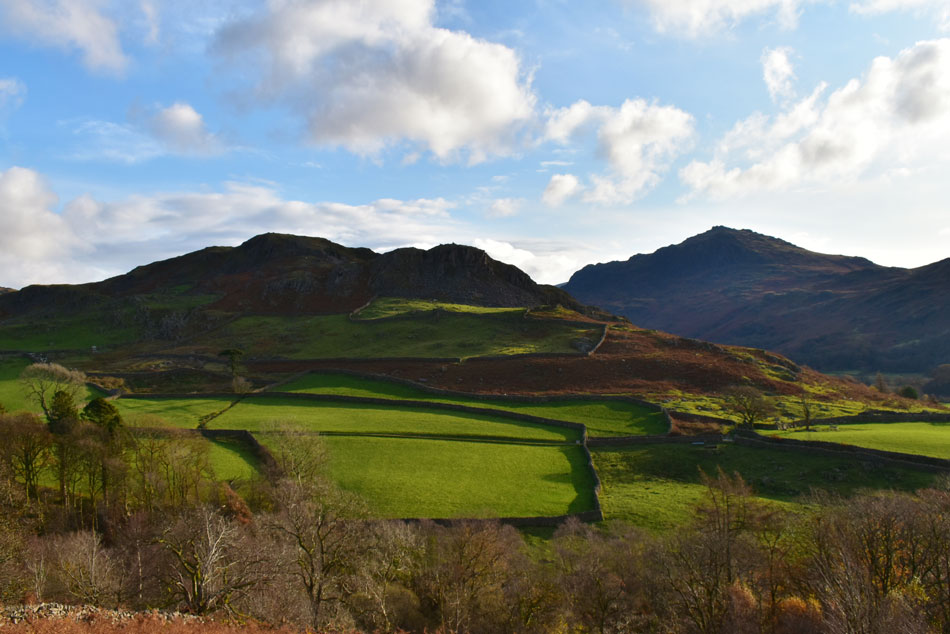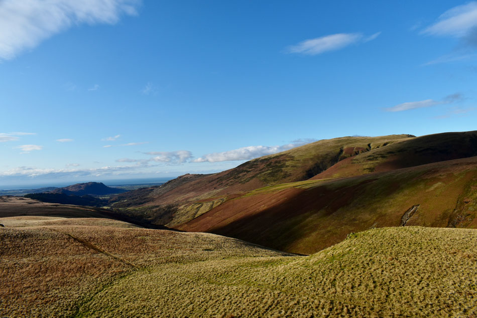 Looking back on Great How (R) and Sca Fell as I head for Whinscales. |