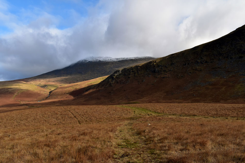 That's Great How over on the right which can be gained from the descent of Slight Side via Quagrigg Moss or as I'll be ascending today via Oliver Gill seen tucked away in shade in the centre of the photo. |