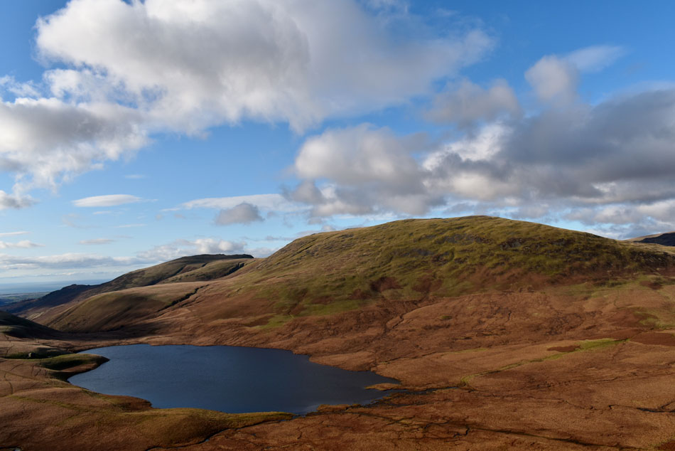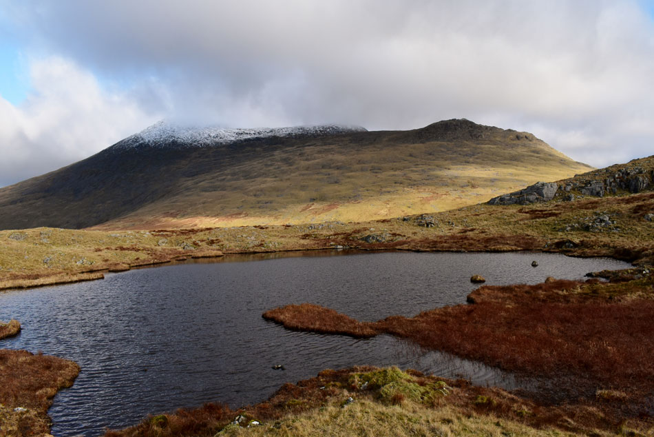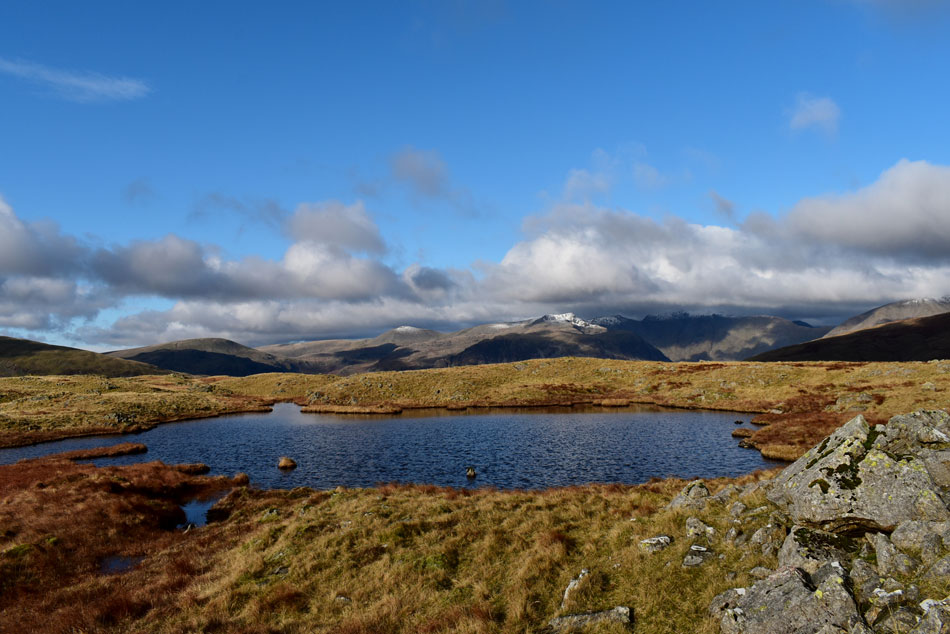 Sca Fell and Slight Side as I pass a collection of Tarns on route to Great How summit. |
