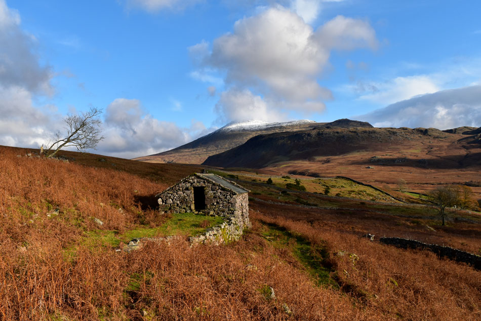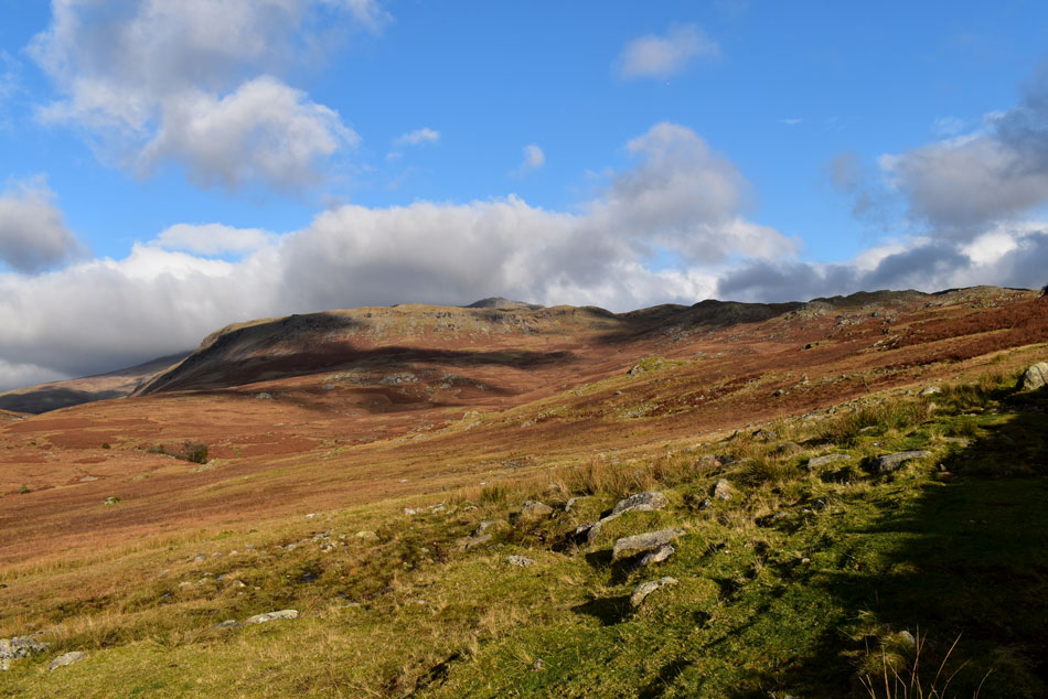 Great Barrow and Harter Fell (Eskdale) as I ascend towards the old Peat Huts. |