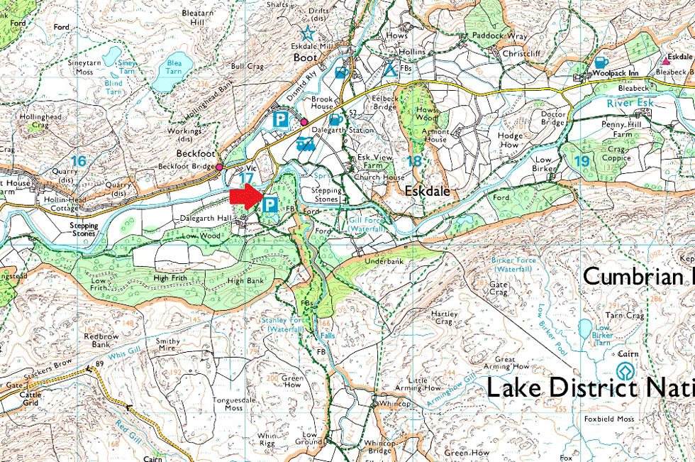 Parking Details and Map Car Park, Dalegarth Hall, Eskdale |