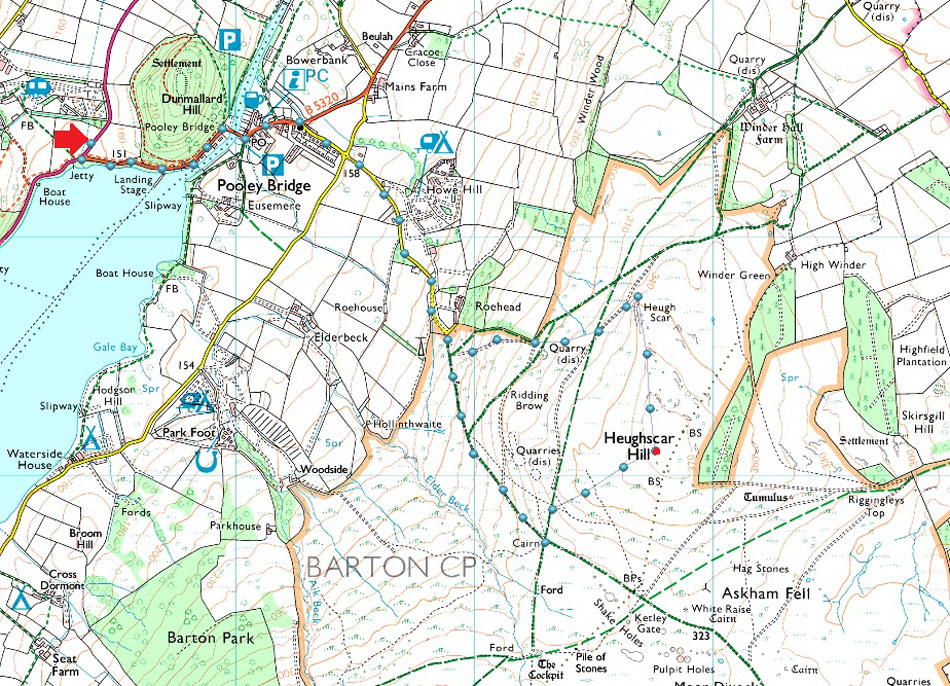 Todays first walk officially starts from the pay and display car park next to Pooley Bridge which is out of action due to the construction of the new bridge so a temporary car park has been put in place close to the junction of the A592 and the B5320 adding to this there is a footbridge for pedestrians only which makes life a little easier without having to drive the lengthy detour via Eamont Bridge.