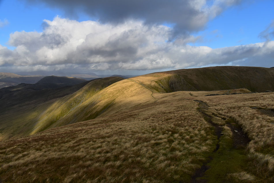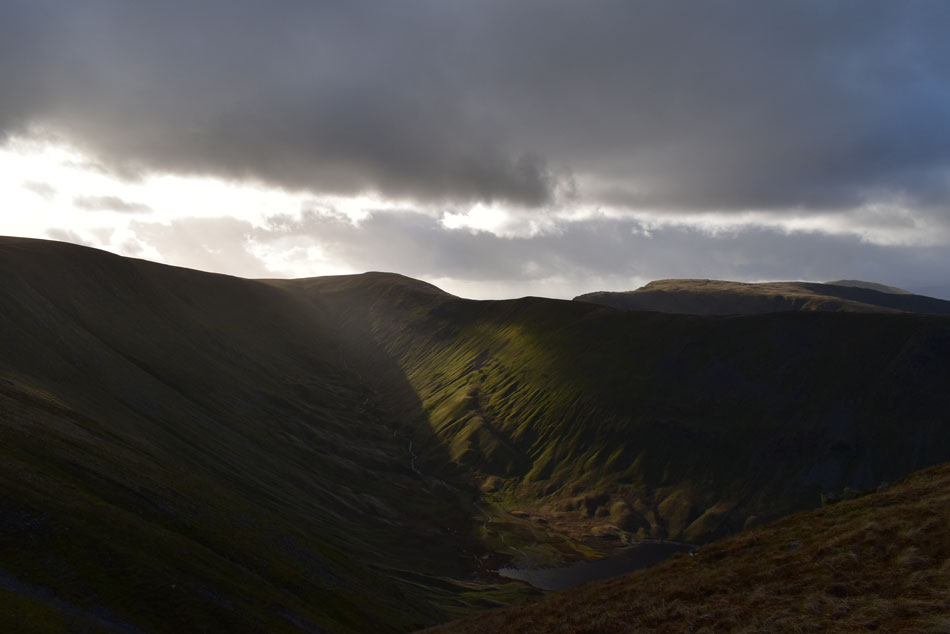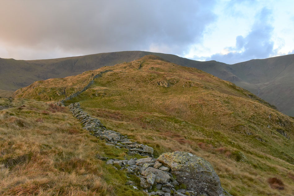 From The Rigg I took the slight descent alongside the stone wall where it started to rain and quite heavy too, the rain hadn't been forecast and had caught everyone including me by surprise. While fellow walkers took the rain in their stride and day trippers ran for cover popping up umbrellas or making hasty returns to their cars. I stop to pack my camera away then shouldered and got wetter than a wet thing in the five minutes it took to reach my car, in those five minutes and in this rain it pays to plan ahead.