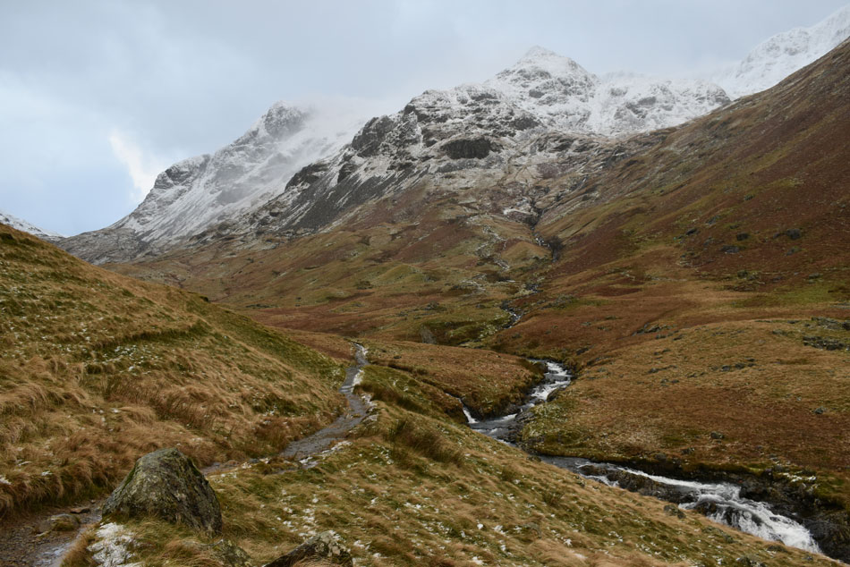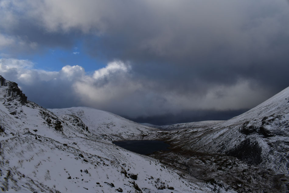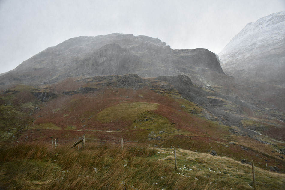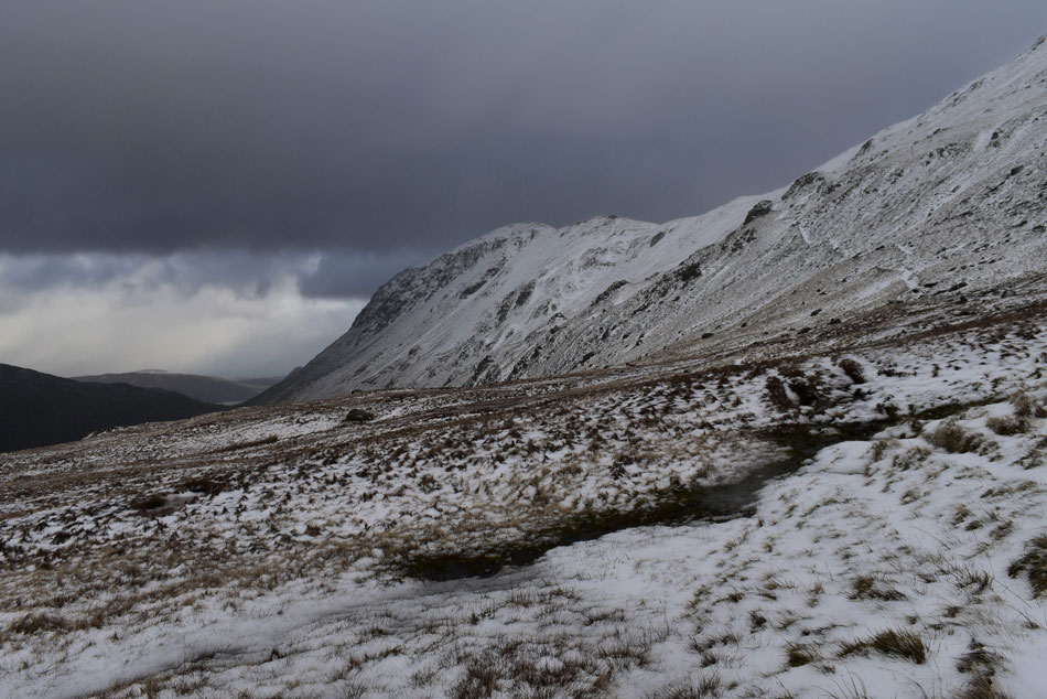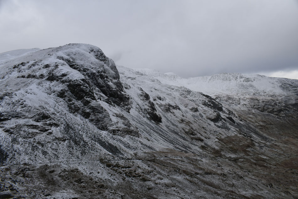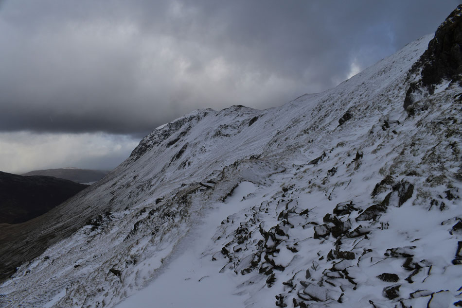 The snow defines the path seen over on the right, it's a path I've used many times only during the heat of Summer when I'm rationing the last of my hydration after a long day on the fells, todays image couldn't be further apart but we're in good spirits and are looking forward to the climb. |