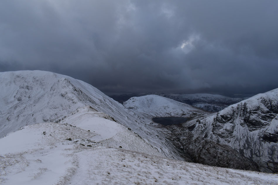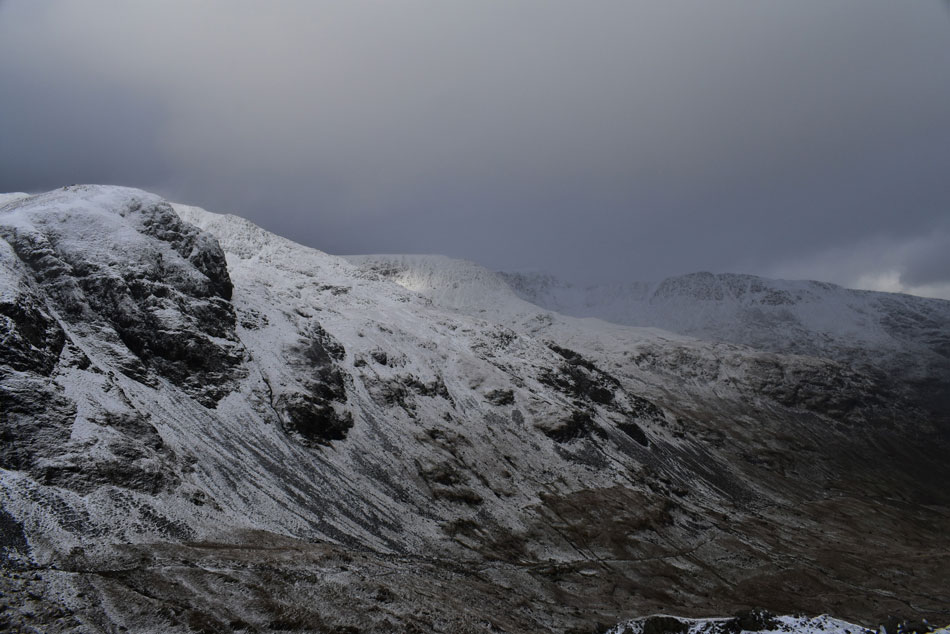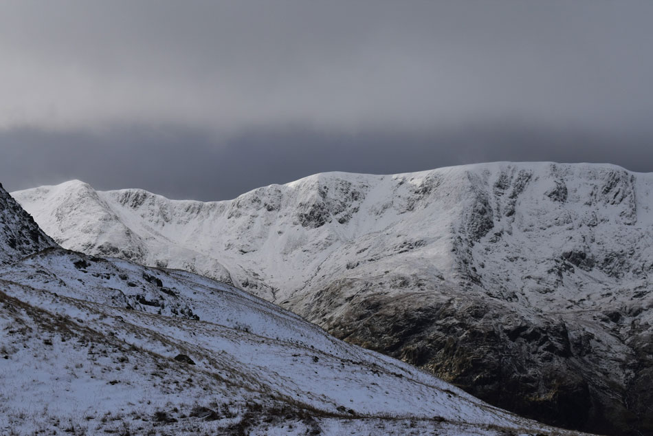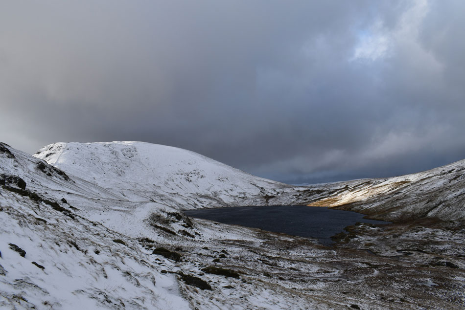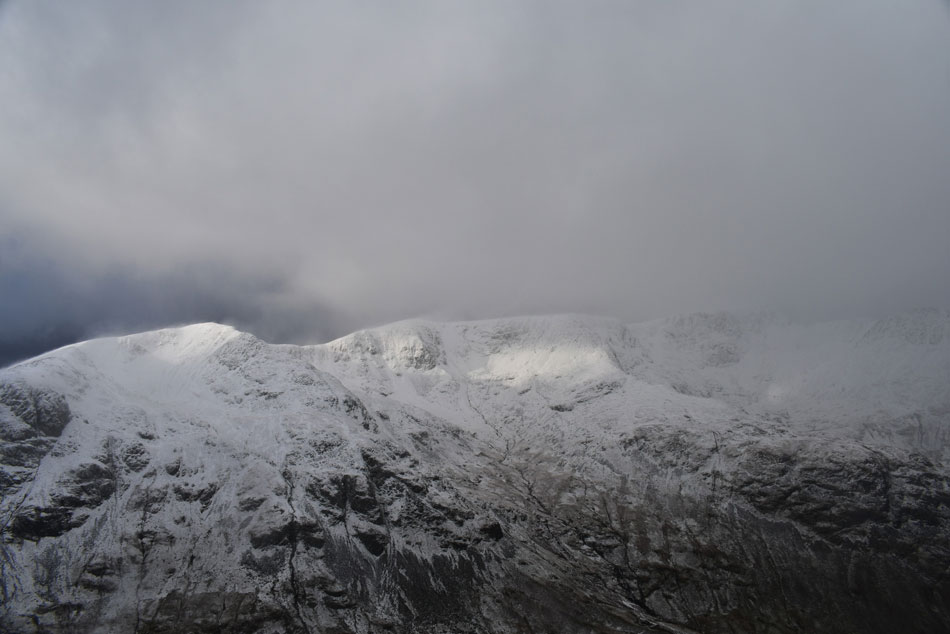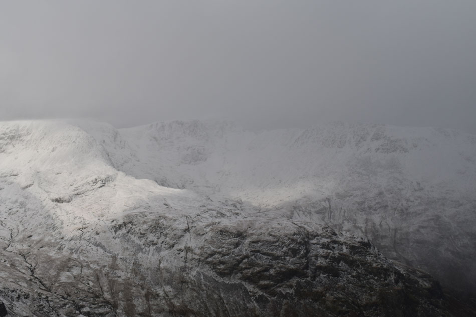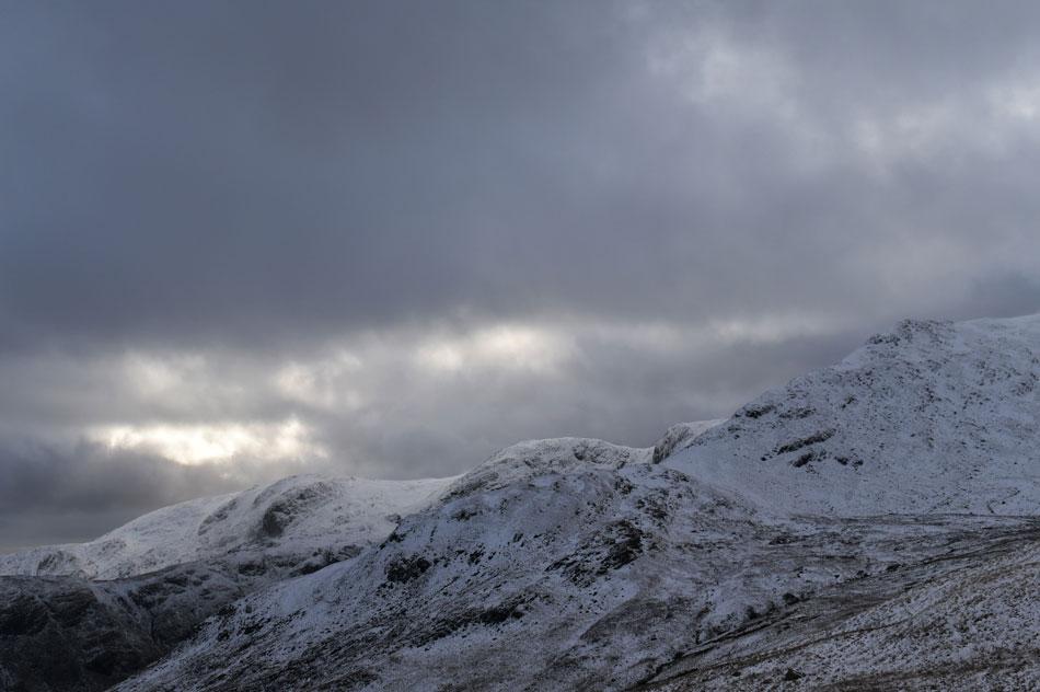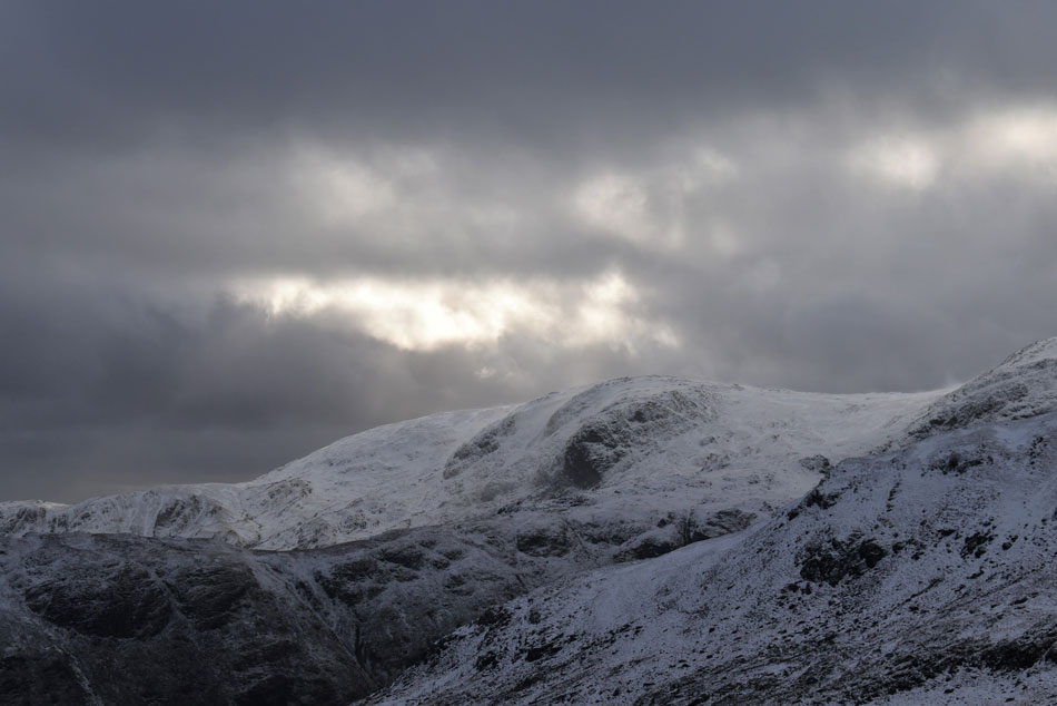 A brief glimpse of sunlight dashes over Seat Sandal. |