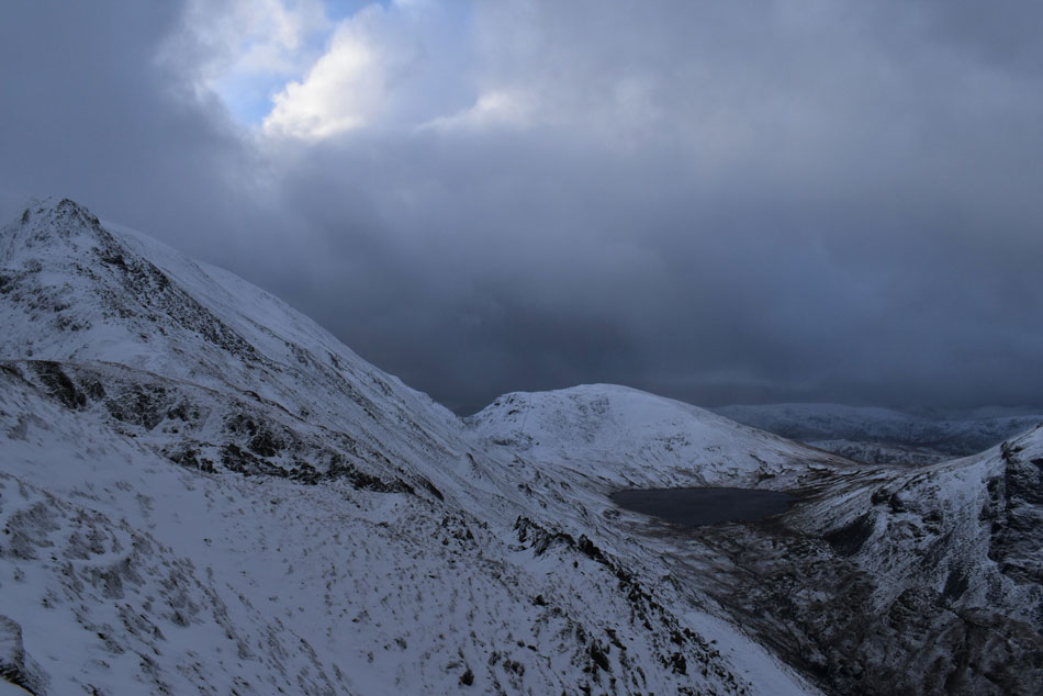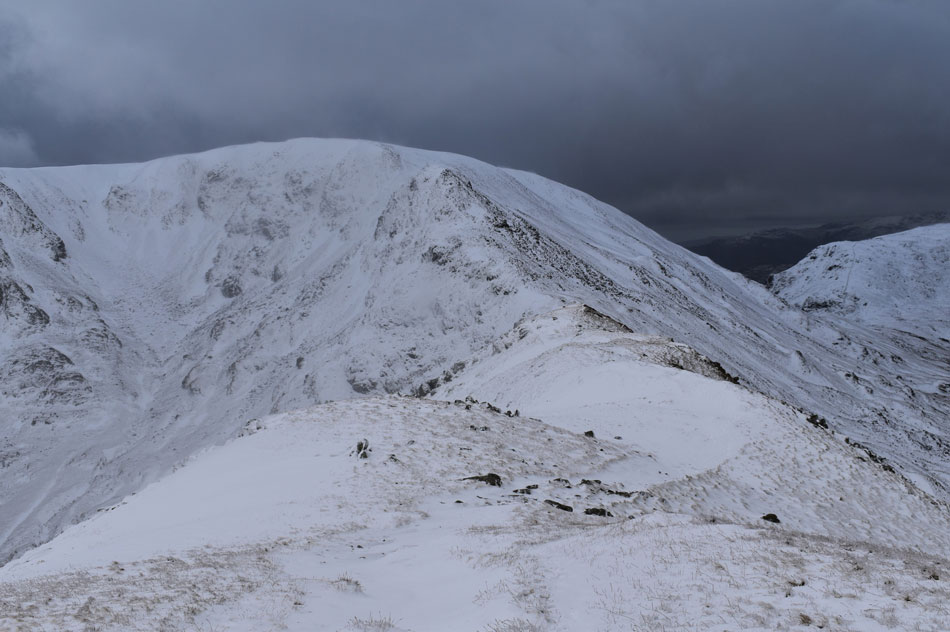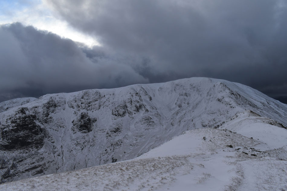 Dashes of sunlight over Dollywagon Pike and Nethermost Pike. |