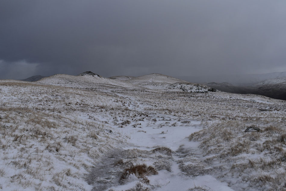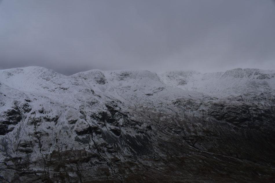 The good news was our surrounding summits remain cloud free even during the sudden hail burst and we were able to get a good look at the recent snowfall over Dollywagon Pike and Nethermost Pike.