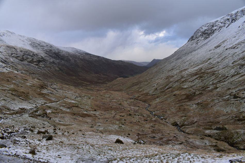 We continued to walk through Grisedale sometimes not able to lift our heads due to the rain and hail which by now was coming at us with some force, the good news however, was should we decide on an ascent on St Sunday Crag at least the wind will be behind us. |