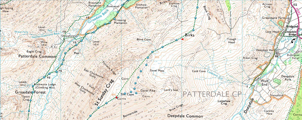 We had already agreed instead of making our descent via the direct route we would head for Gavel Pike just east from the summit, this descent should prove easier and less exposed. |