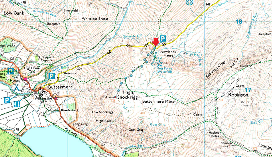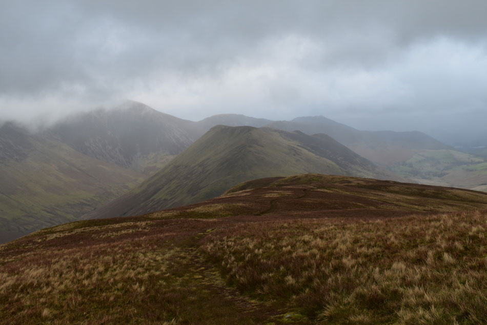 I started with High Snockrigg first which is a simple ascent via Moss Force from the top of Newlands Hause, simple wasn't quite what I recieved encountering slippery rock so much so I turned back at one point and diverted away from the wet rock and ascended steeply via a series of grassy ledges. It's a lovely route where on a clear day you'd be hard pressed to find better views only today it seemed my views were pretty restricted but an enjoyable short walk all the same. |