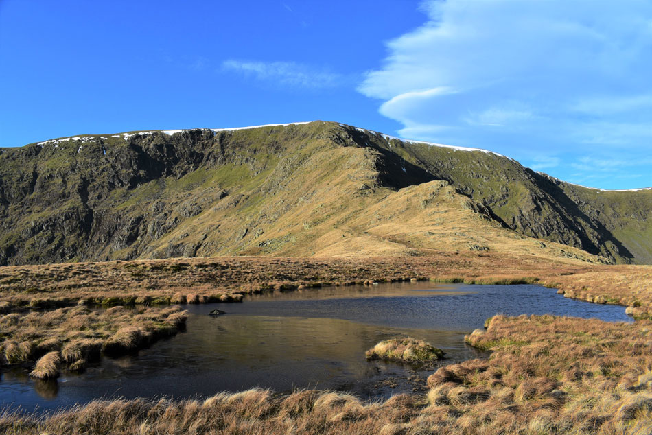 Looking back on High Raise (Martindale) as I cross the sheltered col at the head of Rannerdale Beck.