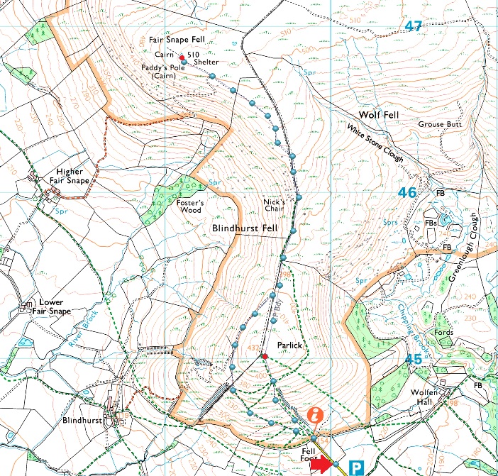 Todays walk couldn't be more simple as my plan is to walk over Parlick to Fair Snape Fell then head back the same way, or it would have been had I not seen the path that flanked Parlick on its east flank which I used on my way back to Fell Foot. |