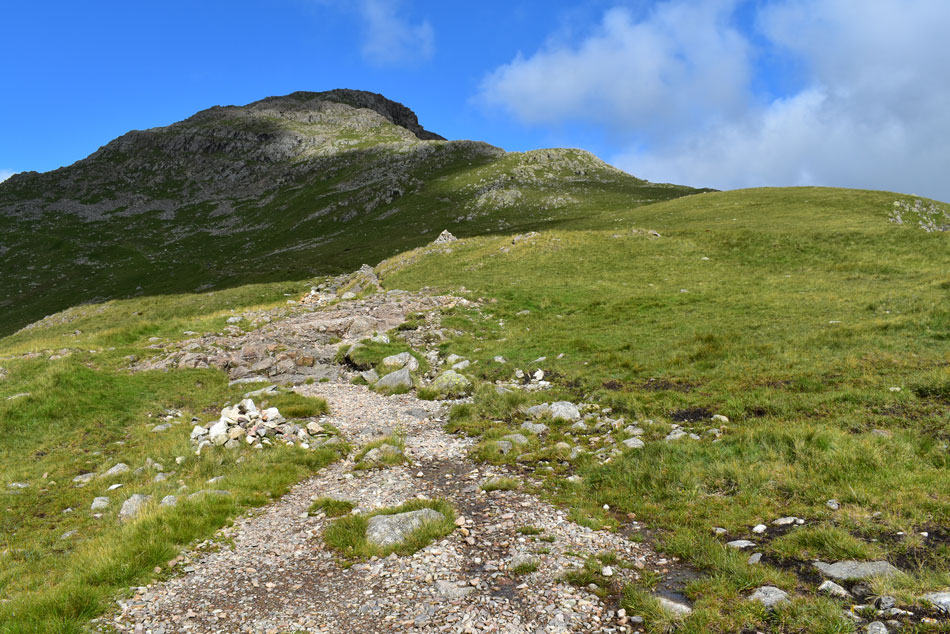 Approaching the point where I leave the path at the cairn ahead (r) for The Climbers Traverse. |