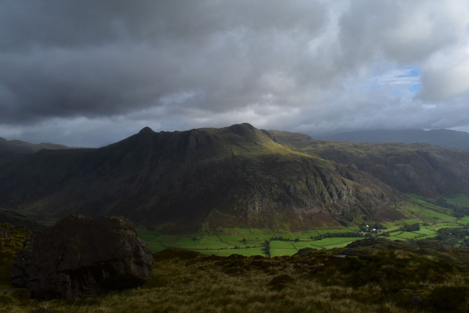 The Band, Bow Fell, Rossett Pike and the Langdale Pikes from Blake Rigg. |