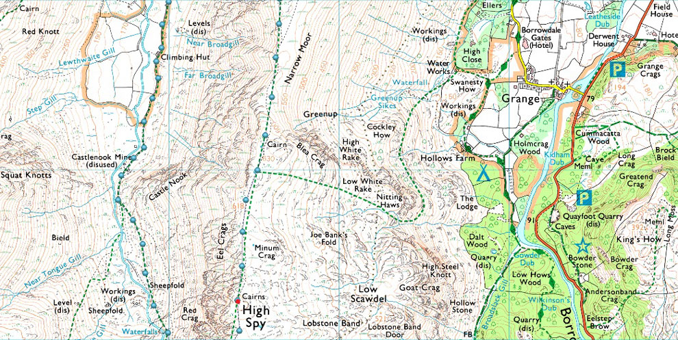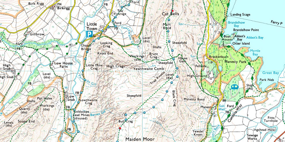Gutherscale - Skelgill Bank - Cat Bells - Hause Gate - Maiden Moor - Narrow Moor - Blea Crag - High Spy - Dalehead Tarn - Newlands Beck - Newlands Valley - Little Town - Skelgill - Gutherscale