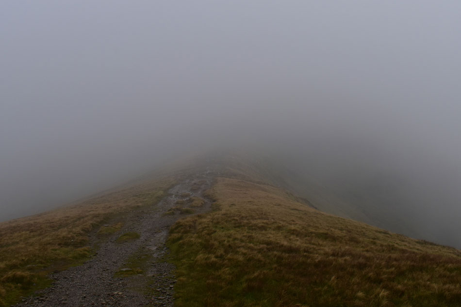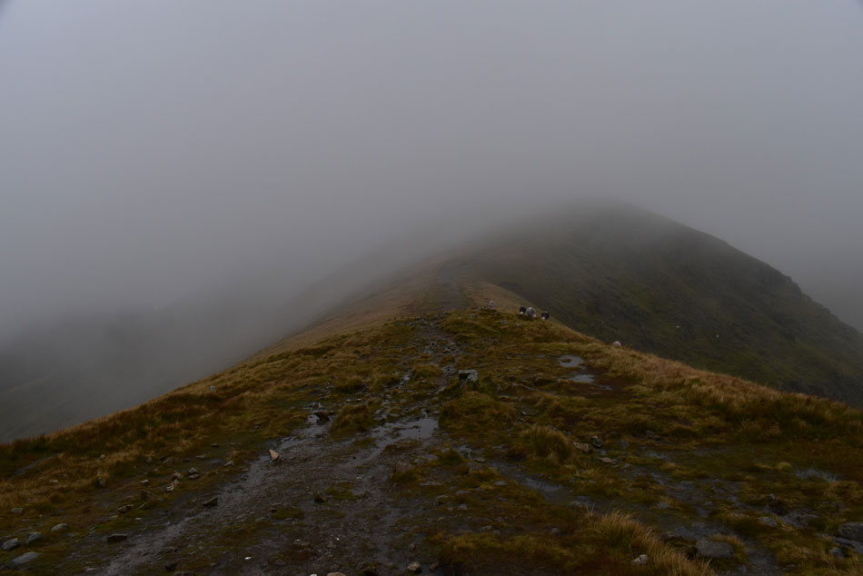 Today proved it's not all about making the summit within the depths of Autumn where the valleys are in complete contrast to the mountain today, Summer felt a longtime ago and the transition between Autumn and Winter was looking right at us. We had it all thrown at us from rain, low cloud and some of the strongest winds Tim and I had endured. I have personal experience of what strong winds can do to a full grown man when a few years ago I was picked up and thrown fifteen feet, today, we weren't taking any chances. |