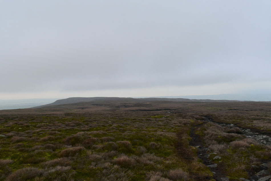 The good news was Clougha Pike was clear but only just, but that was good enough for me. The walk starts from a little free car park just off Rigg Lane from which I'll pick up the Shooters Track almost as far as Grit Fell summit. Walking along a track good enough to drive your car over seemed odd but the track split the moorland and for the best part, the track was forgot about. Descending Grit Fell to Clougha Pike sure made up the effortless ascent though, it was mud and bog all the way, and not just any old mud and bog, this was Lancashire mud and bog, the wettest, and deepest of them all. |