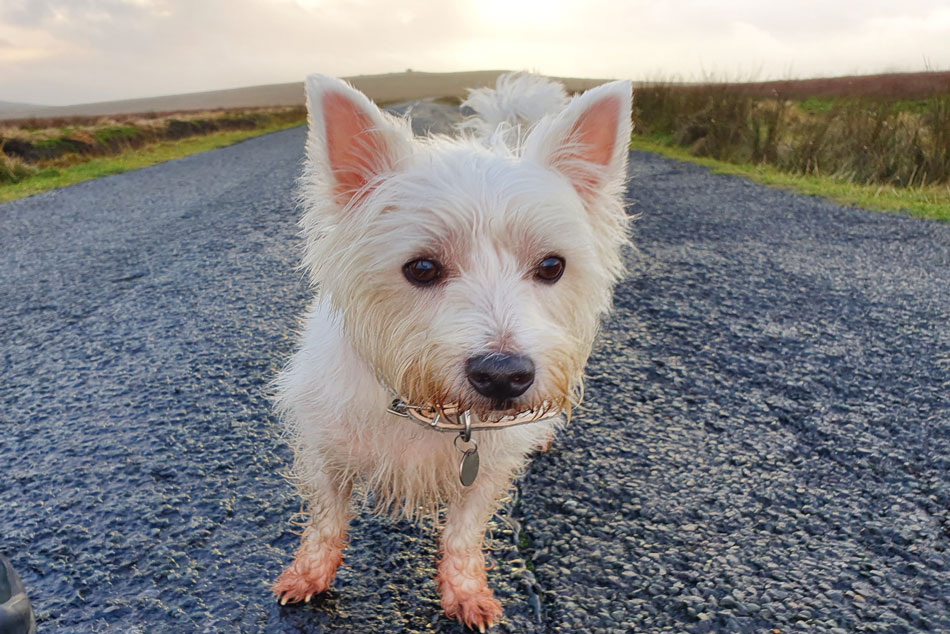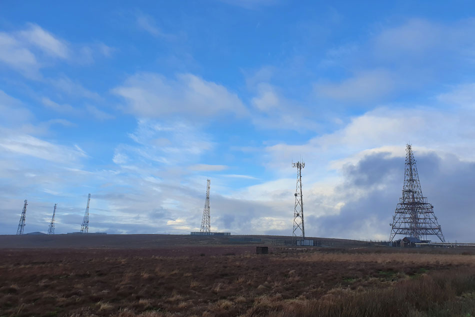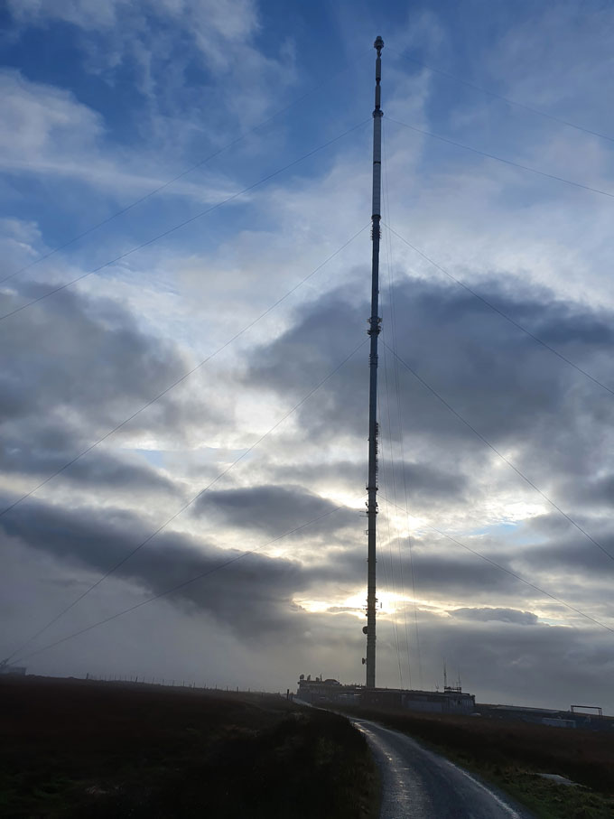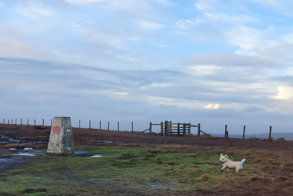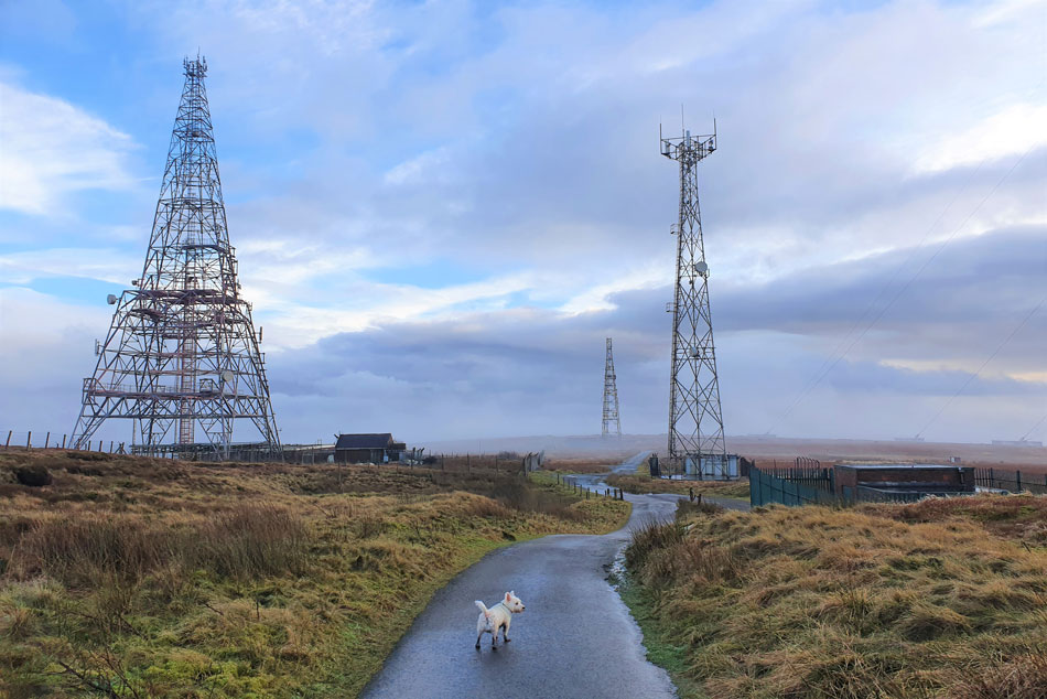 I decided I'd had enough of weather watching so I grabbed the dog leads and headed out to Winter Hill where hopefully I should enjoy a few bright spells before sunset. It's not our normal dog walk but the miles are similar and I wanted to treat Holly and Brad to something different that also included a summit albeit by road.