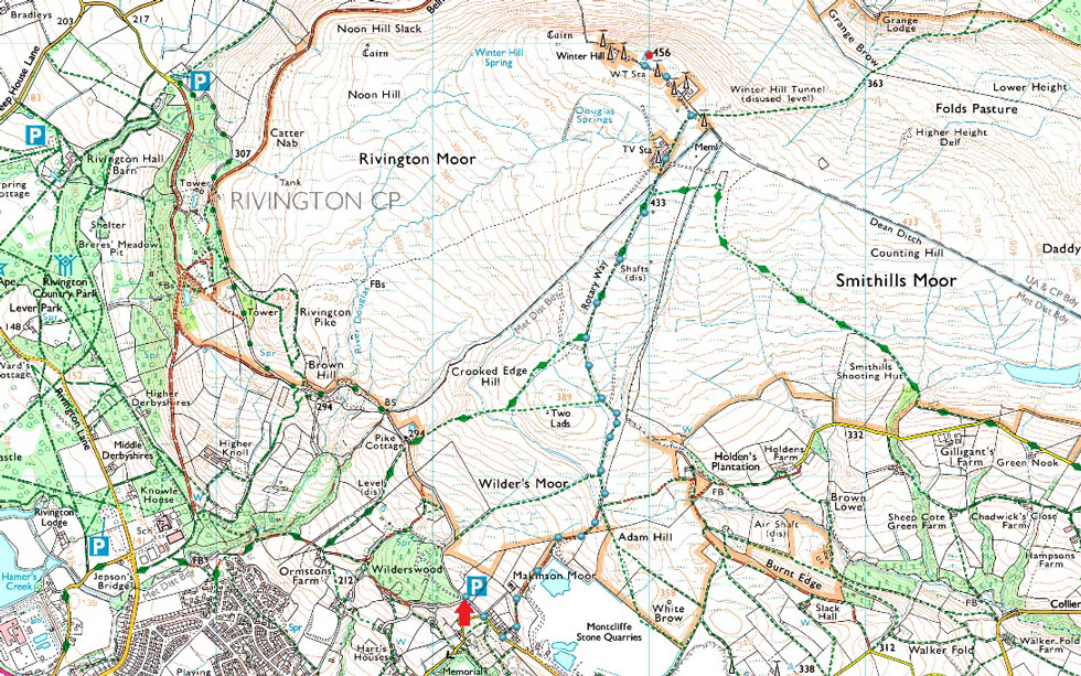 This afternoon I'm starting from the car park at Wilders Wood which despite today being a Friday was very busy and I only just managed to park, the reason why, it looked like there was a large walking group which I spied over the moor at Two Lads summit, so it wasn't just me taking advantage of the dry afternoon, actually as it turns out the forecast drew out a few others too but that didn't stop the walk feeling a little eerie once the mist settled in and the sun was starting to set. |
