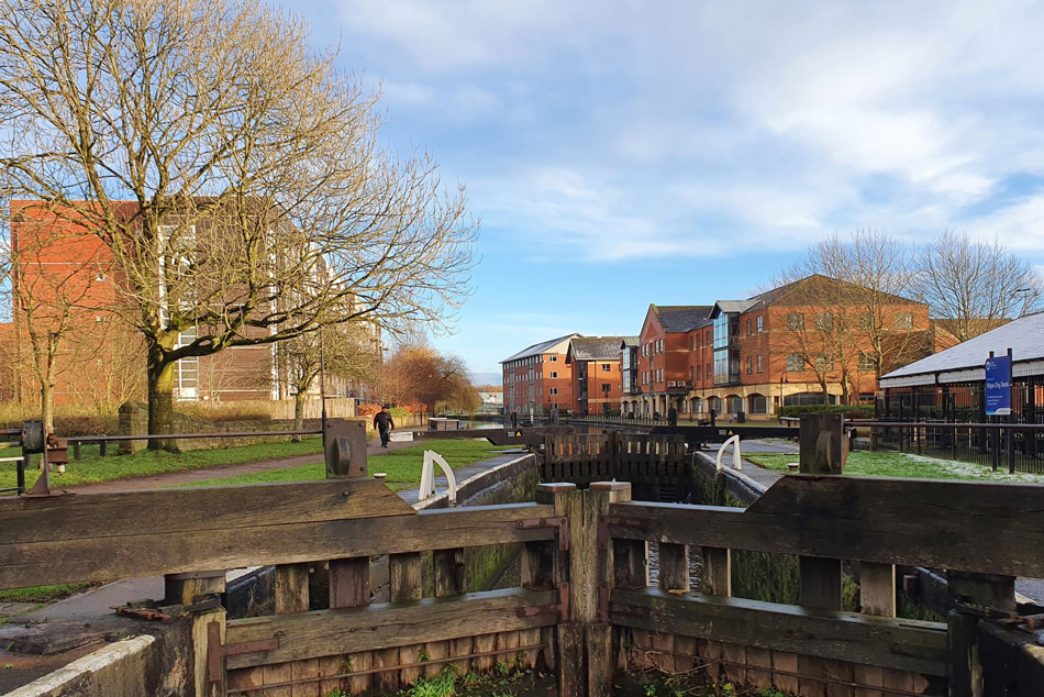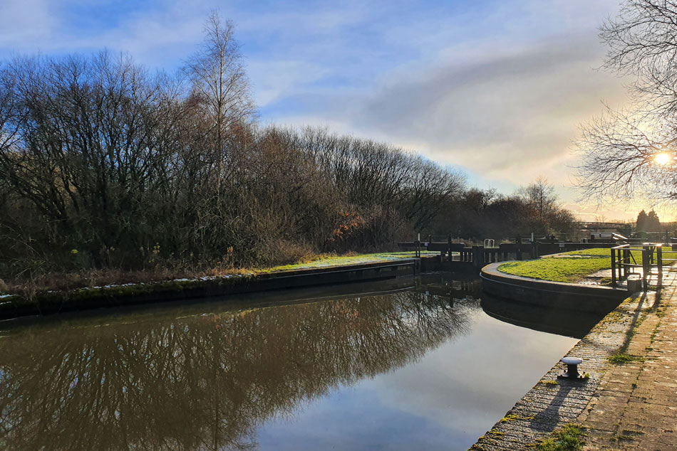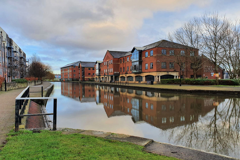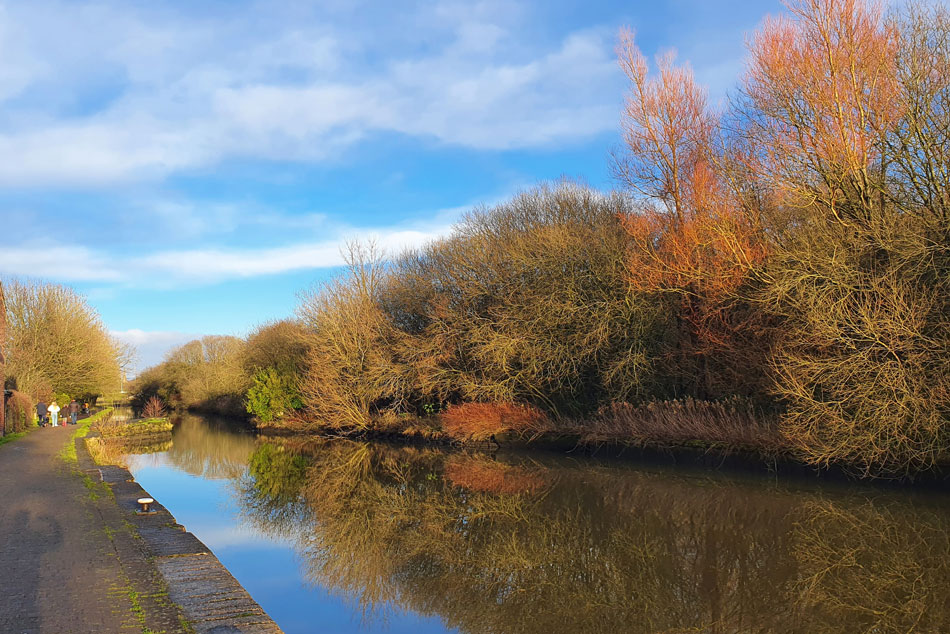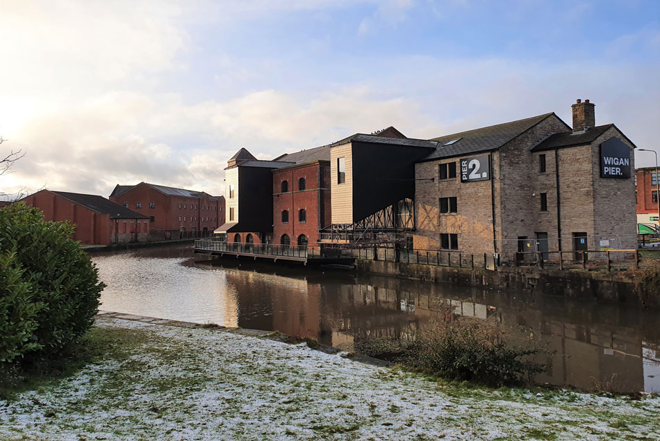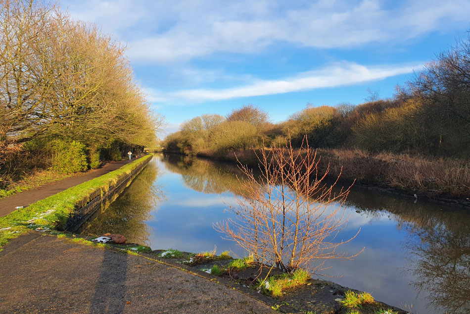 With another nice day forecast I took Brad & Holly out from a door step local dog walk which turned out better than expected so I decided to add it to the website. There was only an hour and a half daylight left and instead of heading for Scotmans Flash I walked in the opposite direction creating a two mile loop which included walking along the Leeds & Liverpool Canal and a tour of Wigan Pier.