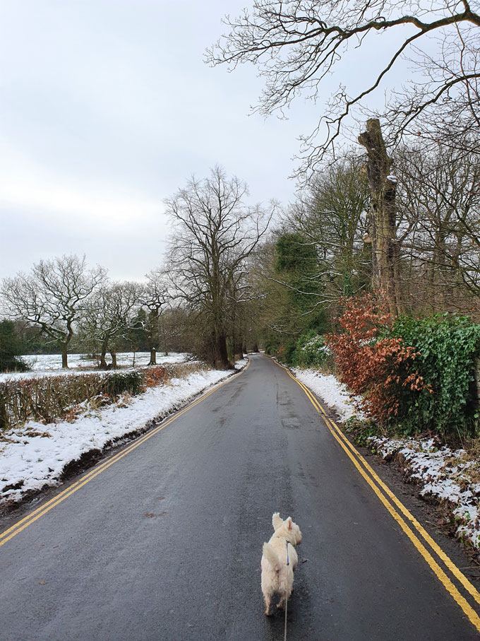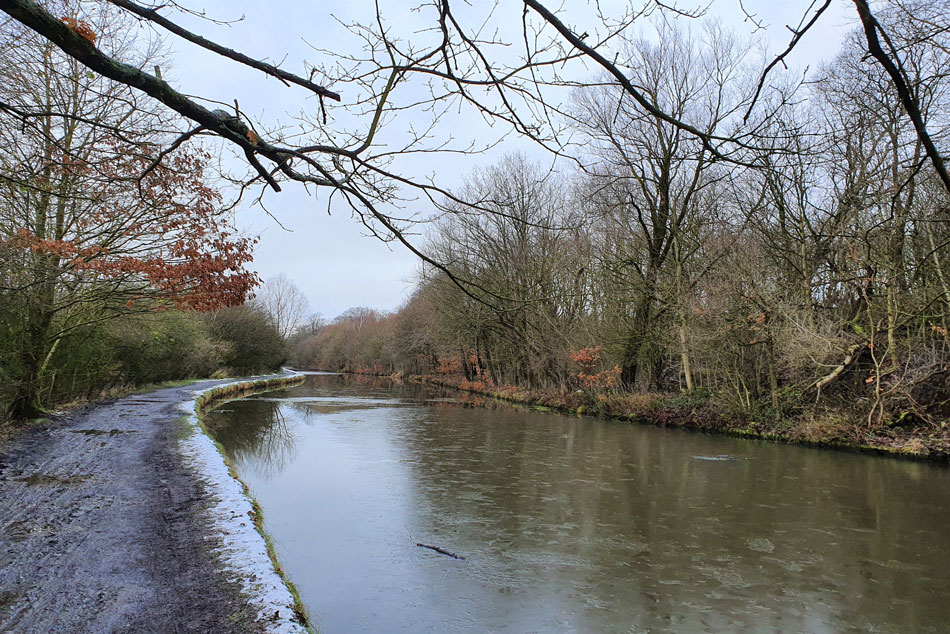 I had planned to walk a much longer version of this route but any standing water had froze during the night then to top things off we had another dusting of snow this morning leaving conditions underfoot treacherous indeed. It was evident as soon as I left the car that I wouldn't be doing my planned mileage at a point when I wondered would I get around at all without falling on my backside, turns out I managed to stay upright but it took a lot of concentration in doing so which kinda picked away at the enjoyment I took from the walk.